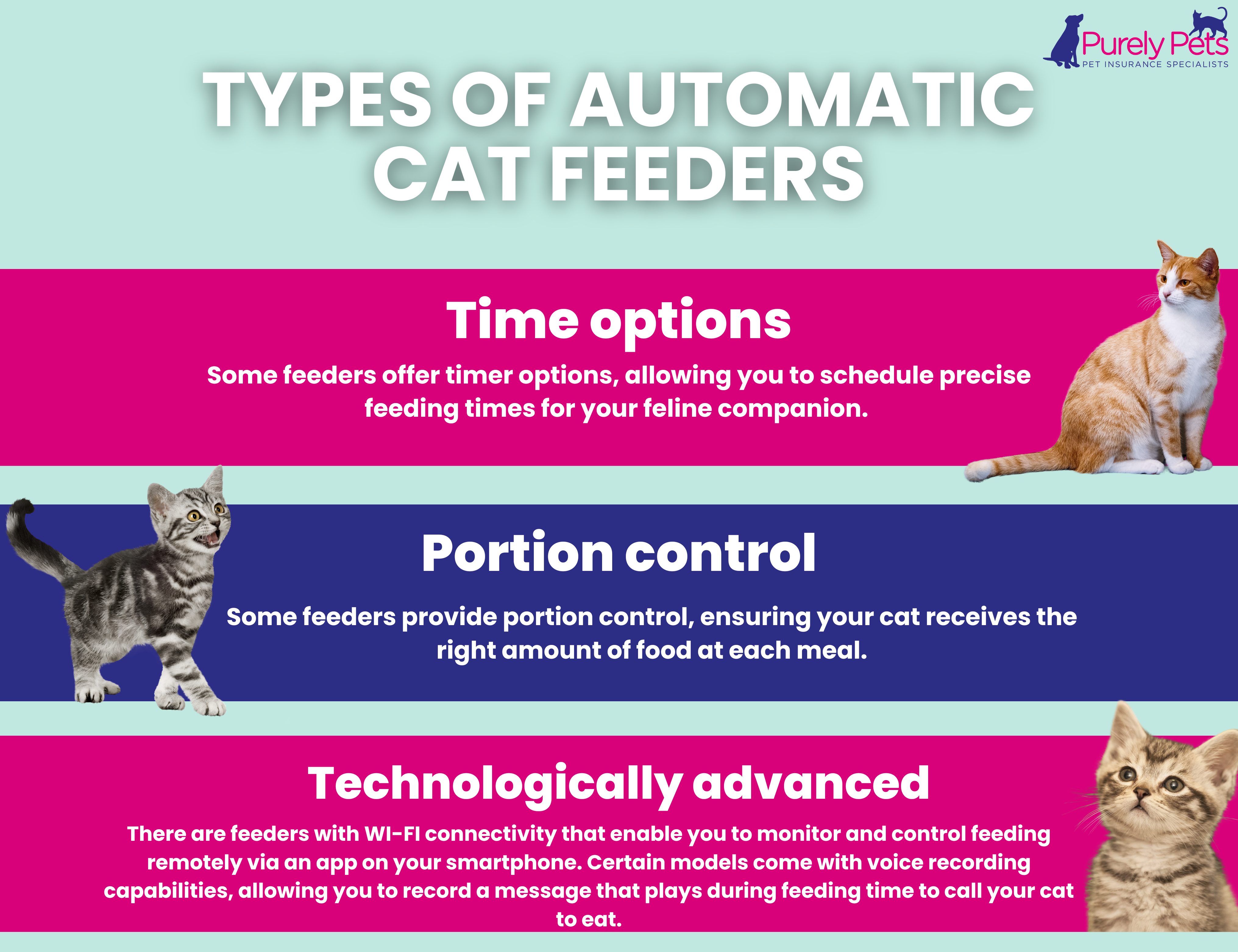 - Automatic cat feeders provide convenience for pet owners, especially those with busy schedules or who travel frequently.